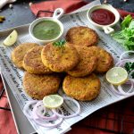 Grease hands with oil,take small quantity (60g) & make kabab of equal sizes (makes 19-20).