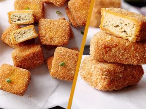 -In a wok,heat cooking oil & fry on low flame until golden & crispy (makes 10-12).