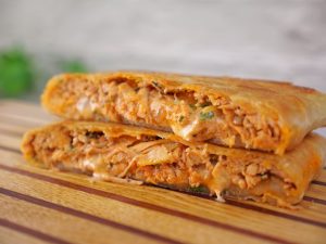 -Add 2 tbs of whisked eggs,onion,fresh coriander,green chilli,cheddar cheese slice & fold all sides of dough,apply whisked eggs & seal properly.