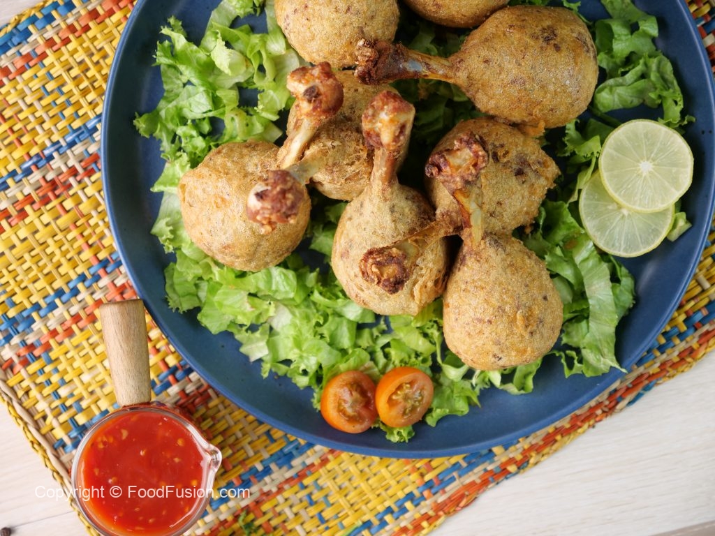 -Ab drumsticks ko maida mein coat karein aur pheetay hoye anday mein dip ker lein.