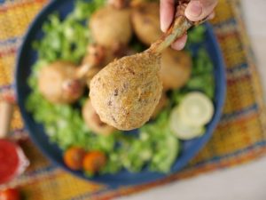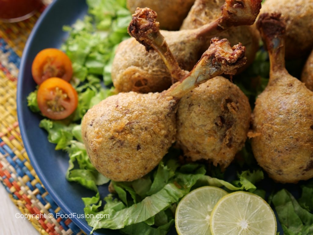 -Now coat drumsticks with all-purpose flour & dip in whisked egg.