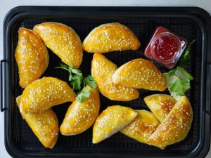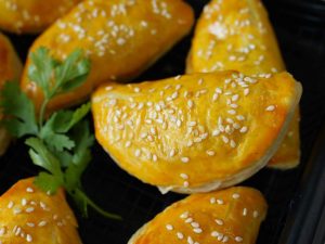 -Apply egg wash & sprinkle sesame seeds (makes 24-26).