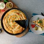 On 10” round baking dish with prepared egg & yogurt mixture (2 tbs),spread evenly & set aside.