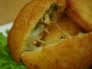 -Trim bread edges & roll out with the help of rolling pin & make cone by applying water & press gently.