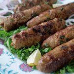 With the help of wet hand,take small quantity (85g) of mixture,make a ball & skew on metal skewers.