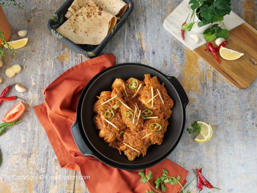 -Hari mirch aur adrak sa garnish ker lein & chapati ka saath serve karein!