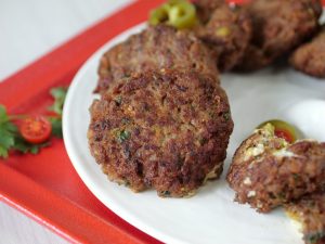 -Take small quantity of mixture (60g) & spread it on your palm,place cheese jalapeno patty & cover properly to make kabab of equal sizes.