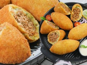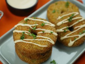 Now dip into beaten eggs and coat in bread crumbs (makes 10-12).