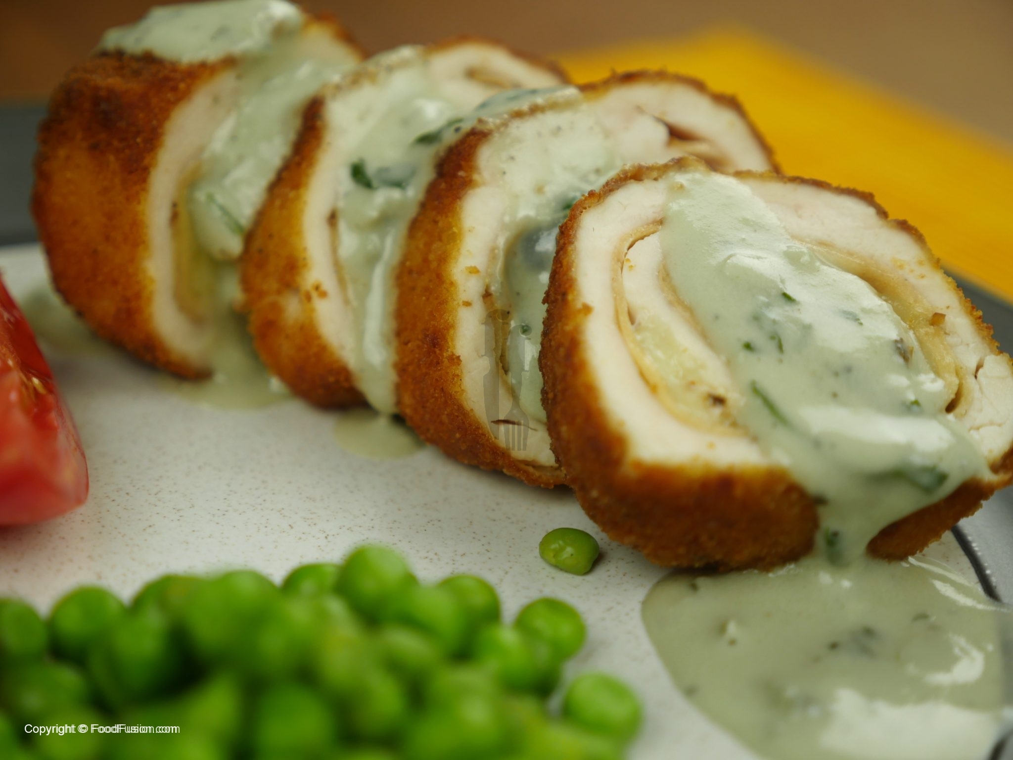 Breast pieces for beech main half cut karein. Plastic ki madad se achi tarah pound karlein. Dehan rahein zada pound na ho warna chicken phat