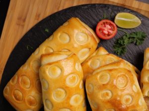 -Apply egg yolk mixture on bread with the help of brush & place it on greased baking tray lined with butter paper (makes 8-10).