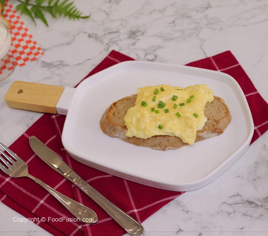 -Scrambled egg ko sour bread ka supper rakh dein & hara pyaz leaves dal ker serve karein!