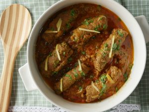 Yakhni,namak,lal mirch crushed aur kali mirch crushed dal ker ache tarhan mix karein aur pani kum ho janay tak paka lein (3-4 minutes).