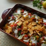In serving dish,add yogurt,phulkiyan,red chilli crushed,chaat masala,potato,chickpeas,tomato,onion, meethi chutney,green chutney,papri,yogurt,meethi chutney,green chutney,red chilli crushed,tomato, papri & serve!