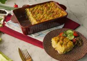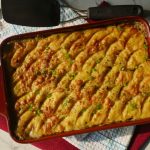 Sprinkle cheddar cheese, dried parsley & broil in preheated oven at 180 C for 25-30 minutes or until top turns golden.