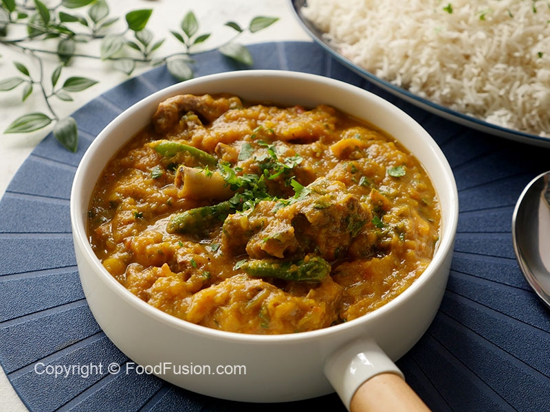 Pani dal ker ache tarhan mix karein aur ubal anay ka bad tamatar naram ho janay tak paka lein (3-4 minutes),dhak dein aur halki ancch per gosht gul janay tak paka lein (40-45 minutes).