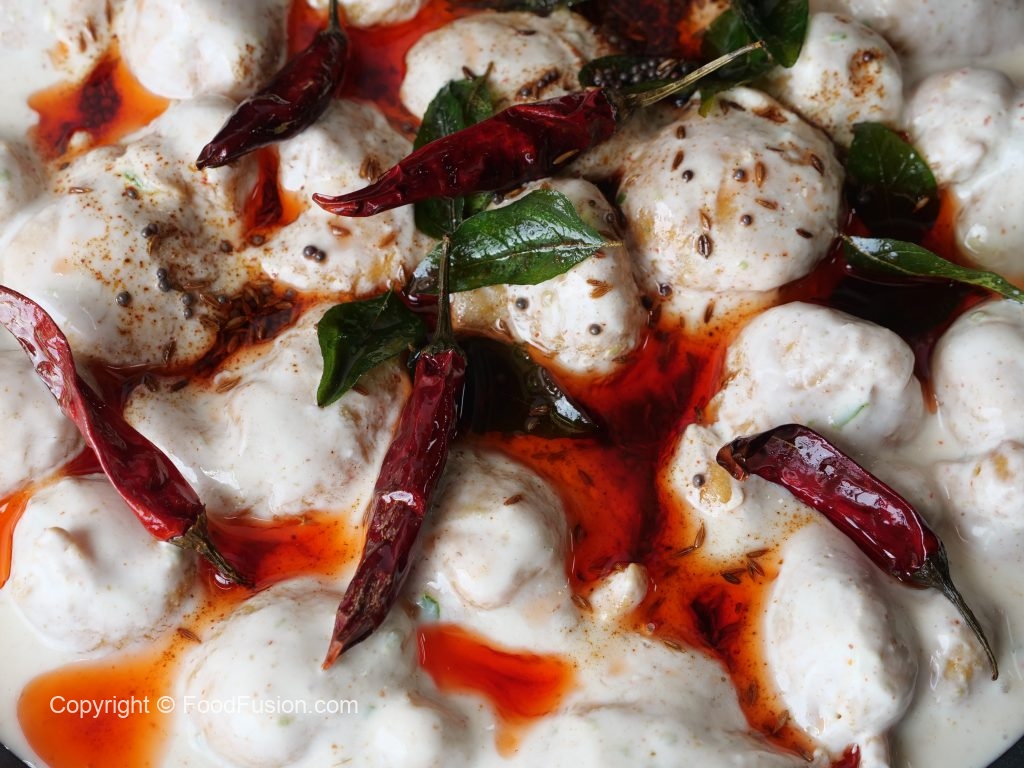 -In a serving dish,add prepared baray & pour prepared yogurt.