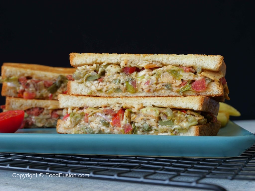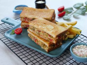-Apply butter on both sides & toast on low flame from both sides until golden & crispy (makes 2-3 sandwiches).