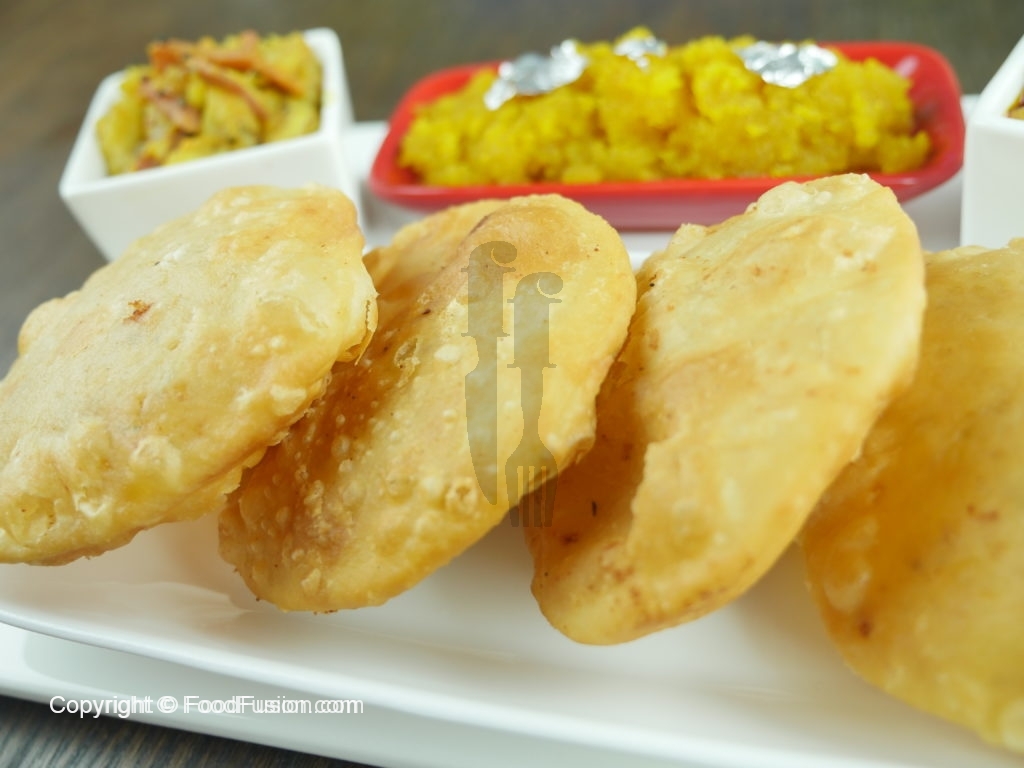 Kachori aur suji ka halway k saath serve karein.