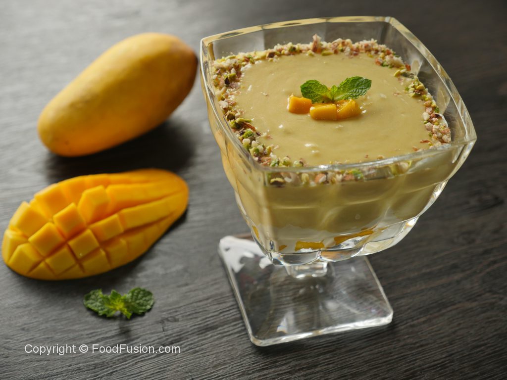 Mango cubes aur dry nuts sa garnish karein aur thanda hunay tak refrigerate ker lein