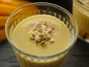 Garnish with mango cubes,dry nuts and refrigerate until chilled.