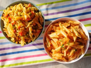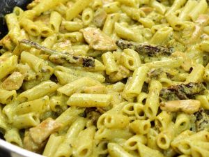-Serving dish mein cooked pasta,spicy chicken fillet,pasta sauce aur fresh basil leaves dal kar serve karein!