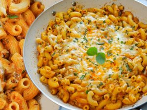 -Add boiled pasta,cheddar cheese,fresh basil leaves,mix well & cook on low flame until cheese melts.