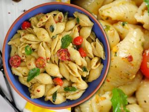 -Boiled pasta,cheddar cheese aur fresh basil leaves dal kar achi tarhan mix karein aur halki ancch per cheese melt ho janay tak paka lein.
