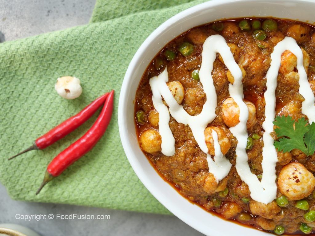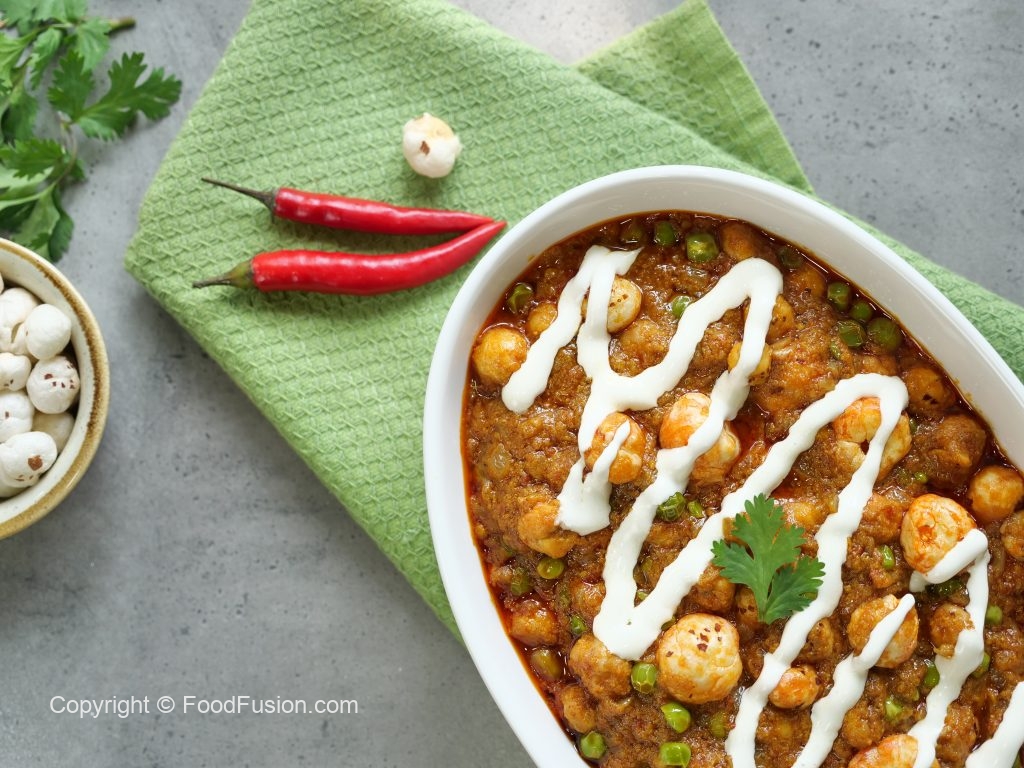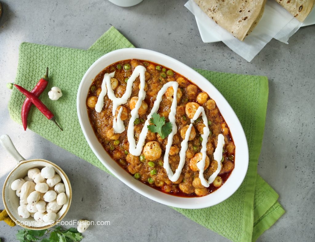 Matar Makhana Curry – whole green peas and toasted lotus seeds in a rich, flavorful gravy, bringing warmth to every bite. Enjoy with soft rotis or a bowl of rice! #happycookingtoyou #foodfusion #araywahh