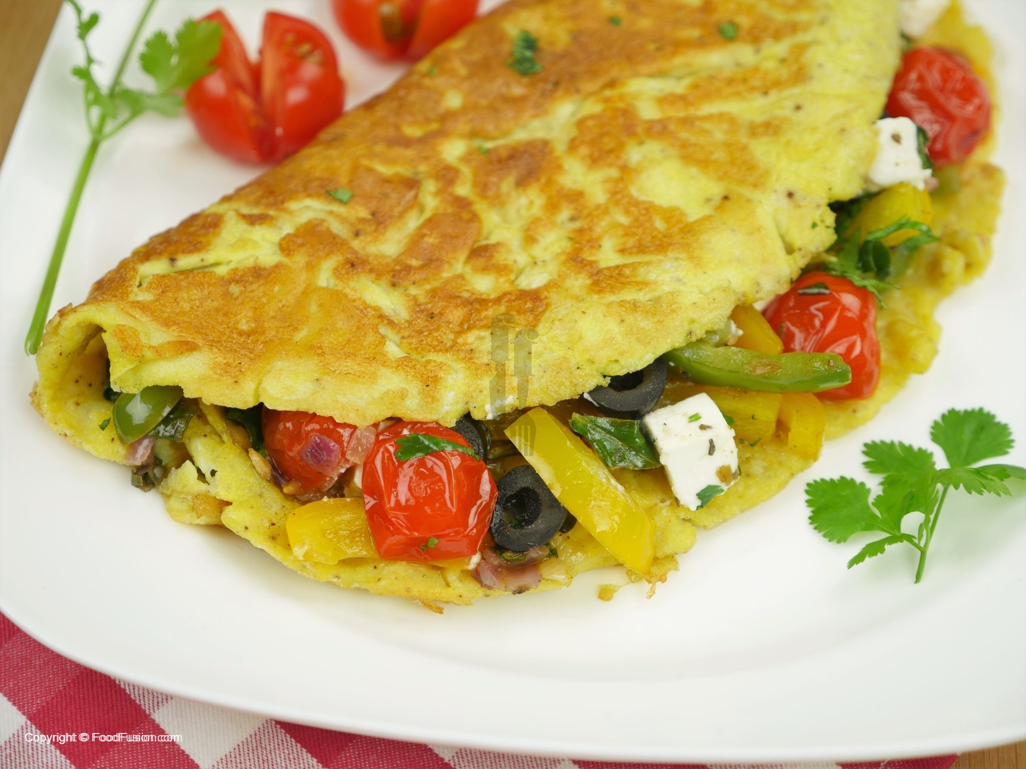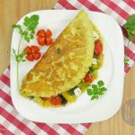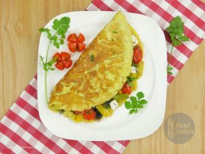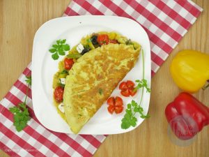 Sprinkle dried oregano and fill stir fried vegetable over half of each omelette.