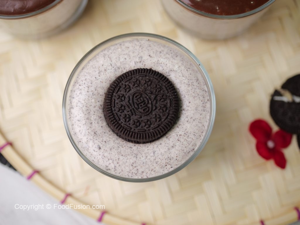 -In serving cup,add 2-3 tbs of oreo crumbs & press firmly to set an even layer.