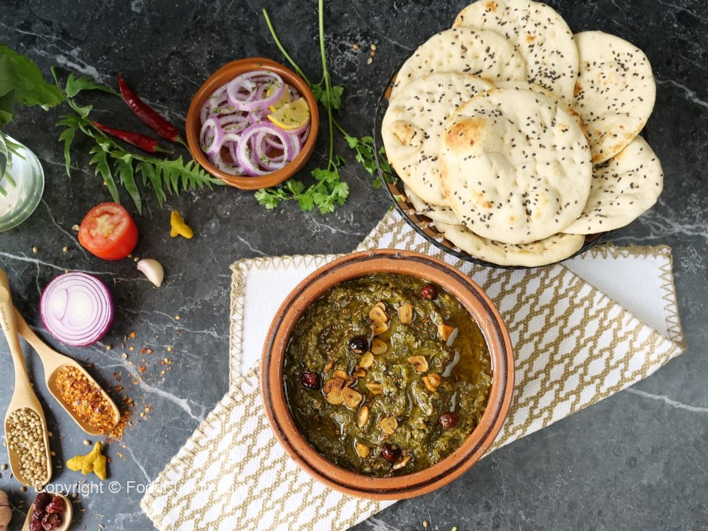 Serve mini naan with palak handi.