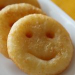 In wok,add corn oil,heat it and fry potato smileys on medium flame until golden brown.
