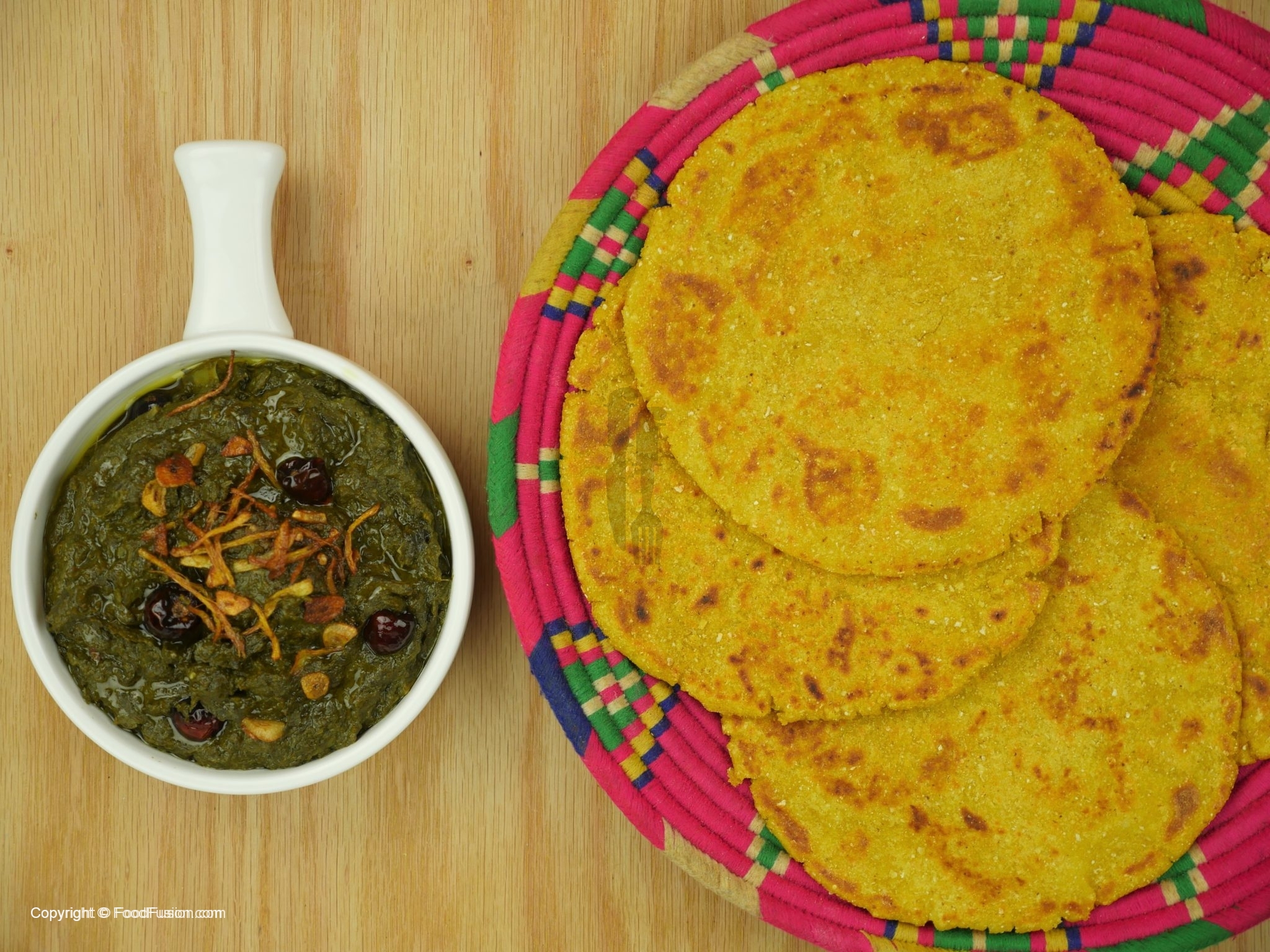 Saarso saag tayyar hai,Makai ki roti ka saath serve karein.