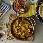 Garnish with butter,ginger,green chilli,fresh coriander & serve with naan.