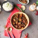-Garnish with spring onion leaves,dried red chilli & serve with boiled rice!