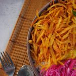 -Cut potatoes into thin julienne,add in water & let them soak for 10-15 minutes then strain & let them dry for 8-10 minutes.