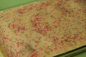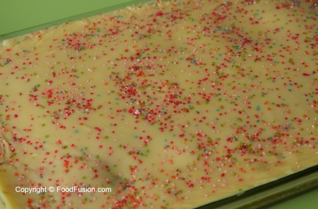 Decorate with multi colored sprinkle.