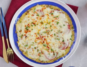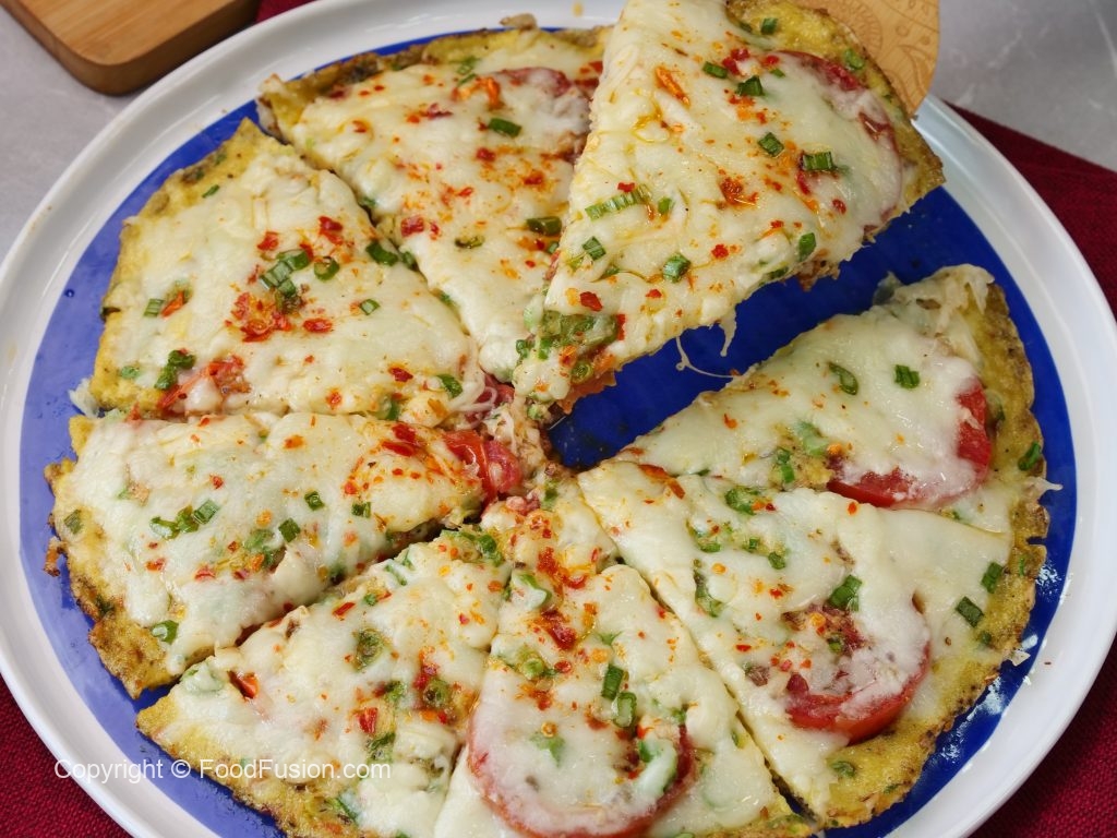 -Add cheddar cheese,mozzarella cheese,red chilli crushed,spring onion leaves,cover & cook on low flame until cheese melts (2-3 minutes).